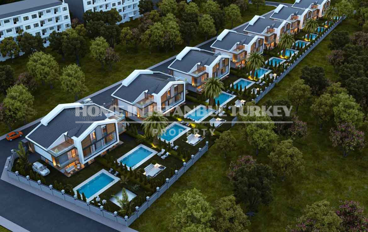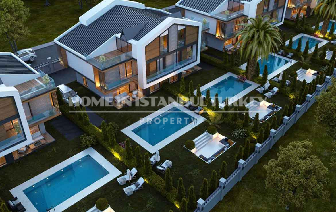 While its peaceful environment relaxes you, transportation facilities offer the opportunity to be in the middle of the city at any time. Villas that have a wonderful sea view are built on 6.000 square meters. Each house is being built independently on an area of 400 m² with a large garden and social facilities. The size of the floor plans designed as 7+2 varies from 550 m2 to 720 m².
